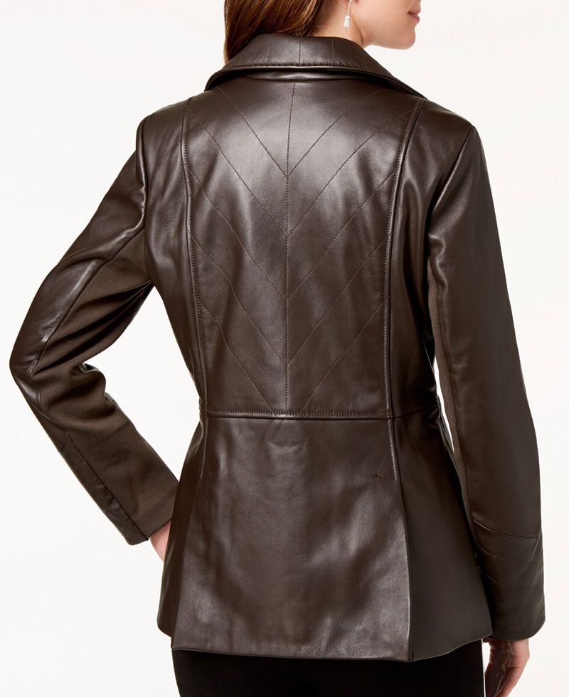 womens brown leather blazer is fabricated from enduring and high quality of genuine leather material. The material we use in the manufacturing of our jackets are long lasting and reliable. This jacket is designed to guard you against cold weather and to make you feel warm. The inner soft viscose lining makes this garb comfortable to wear. v stitched leather jacket has a notch style collar. This leather jacket has full length style sleeves with open hem style cuffs. The front single breasted buttoned closure of this woman’s casual leather jacket fits in with the style of this attire perfectly. There are pockets on the side in which you can rest your hands or can secure stuff. This jacket comes in brown color. Order this garb now and see the stuff and detailing of this jacket yourself. You will now regret after buying this jacket.