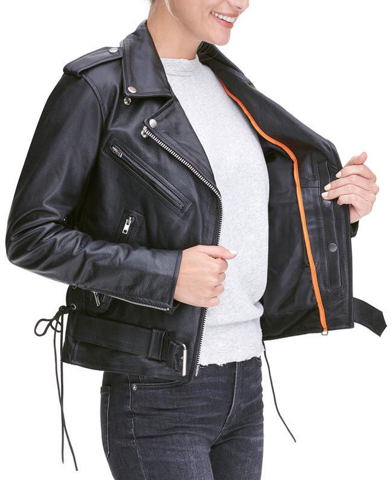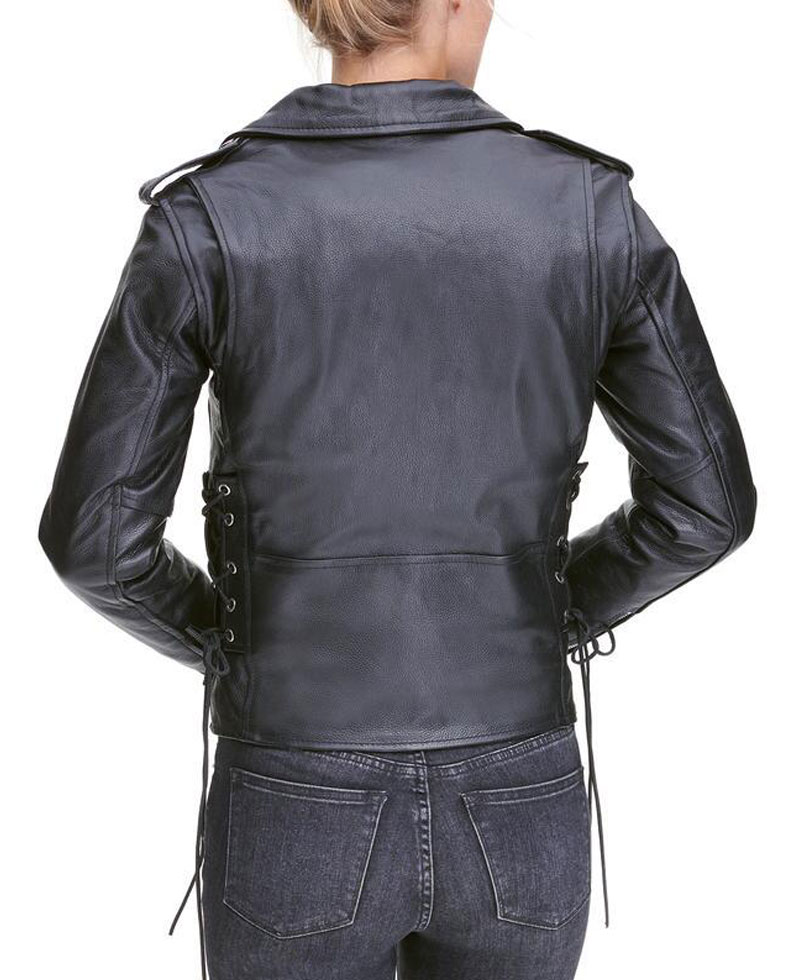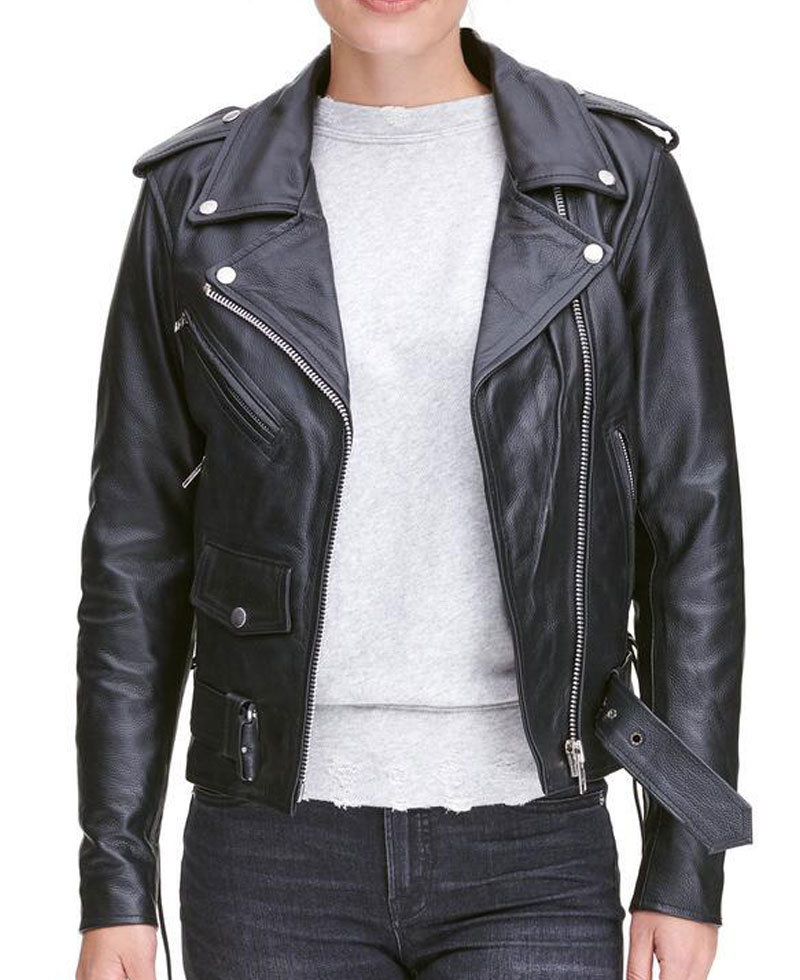 womens leather motorcycle jacket is manufactured from a reliable quality of genuine leather material. The stuff we use in the production of this jacket is good, lasting and of high quality. This jacket will shield you against cold climate and will make you feel warm and cosy. This jacket will give you a very appealing sight. The inner soft viscose lining makes this outfit very comfortable that you can carry it all day long. womens classic asymmetrical motorcycle jacket has full length sleeves with zipper cuffs. This jacket has front asymmetrical zipper closure. This jacket has a notch style collar. There are Two zippered front pockets with one zippered pocket on right chest along with one snap pocket above right hem. There are shoulder epaulets on this jacket. You can get this stylish and casual wear in black color. Do order your piece right now without wasting further time. You would not regret once after buying this jacket.