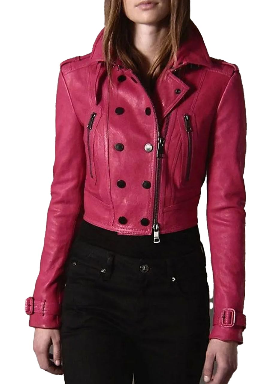 This Winter, Channel All Eyes Towards Your Stunning and Incredibly Stylish Aura. Elevate Your Personality With a Touch of Glamour by Adorning Yourself in the Women’s Cropped Fuchsia Pink Jacket. Crafted From High-quality Leather, This Pink Leather Biker Jacket is Not Only Warm but Also Versatile for Winter-round Use. Its Gentle Viscose Lining Guarantees Day-long Comfort. Moreover, the Sophisticated Pink Color Adds a Dash of Charm to Your Overall Presence. The Has Been Expertly Crafted, Featuring a Lapel-style Collar, Secure Zippered/buttoned Closure, and Convenient dual-side Waist Pockets to Enhance Its Fashion and Functionality. The Fuchsia Leather Jacket is a Reflection of Your Individuality, Showcasing Your Distinct Personality.