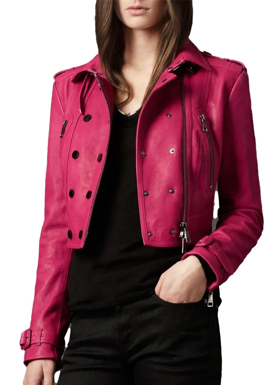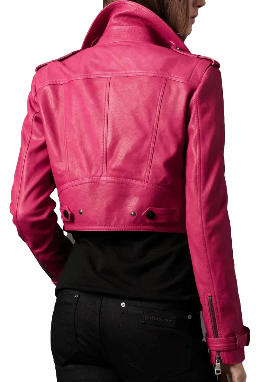 Women’s Cropped Fuchsia Pink Leather Biker Jacket