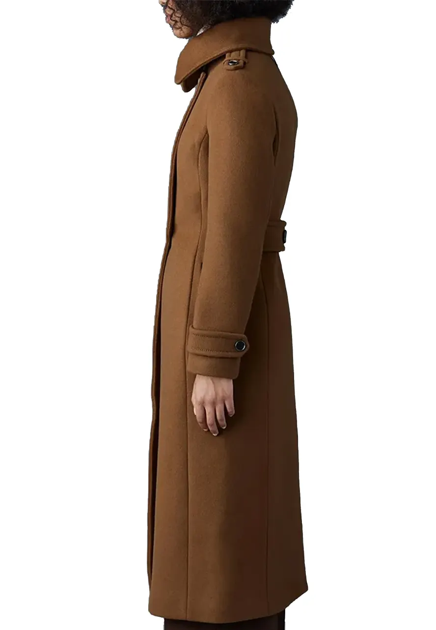 Step Out in Style With Confidence While Wearing the Women’s Double Face Elodie Military Coat. It is a Wardrobe Essential That Gives You a Trendy Style and Accompany You in Severe Cold Weather. This Dapper Coat Has Been Fabricated by Premium-quality Wool to Make It Warm and Ageless, While Its Soft Viscose Inner Will Comfy You All Day Long. The Elegant Brown Color Will Enhance Your Beauty. The Elodie Military Brown Wool Coat Has Been Designed by Using All Smart Features Like a Shirt-style Collar, Double-breasted Buttoned Closure, and Side Waist Pockets to Keep Your Small Accessories. The Brown Wool Coat Will Make You Feel the Gentle Caress of Its Plush Fabric and Keep You Warm and Stylish.