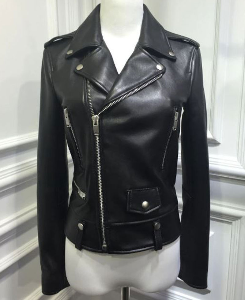 The women’s leather biker jacket comes with an external manufactured from high and premium quality of genuine leather material. On the internal side of this jacket is a lining of soft and comfortable viscose that will keep you warm and comfortable. The women’s asymmetrical leather jacket comes in black color. The women’s leather biker jacket has front ykk branded asymmetrical zipper closure that fits in perfectly with the style of this apparel. It has a stylish notch lapel style collar. On the external side of this women’s leather biker jacket are branded zipper chest and side waist pockets where you can secure stuff. This apparel comes with zipper cuffs on full length style sleeves. The shoulder epaulets enhance the looks of this attire.