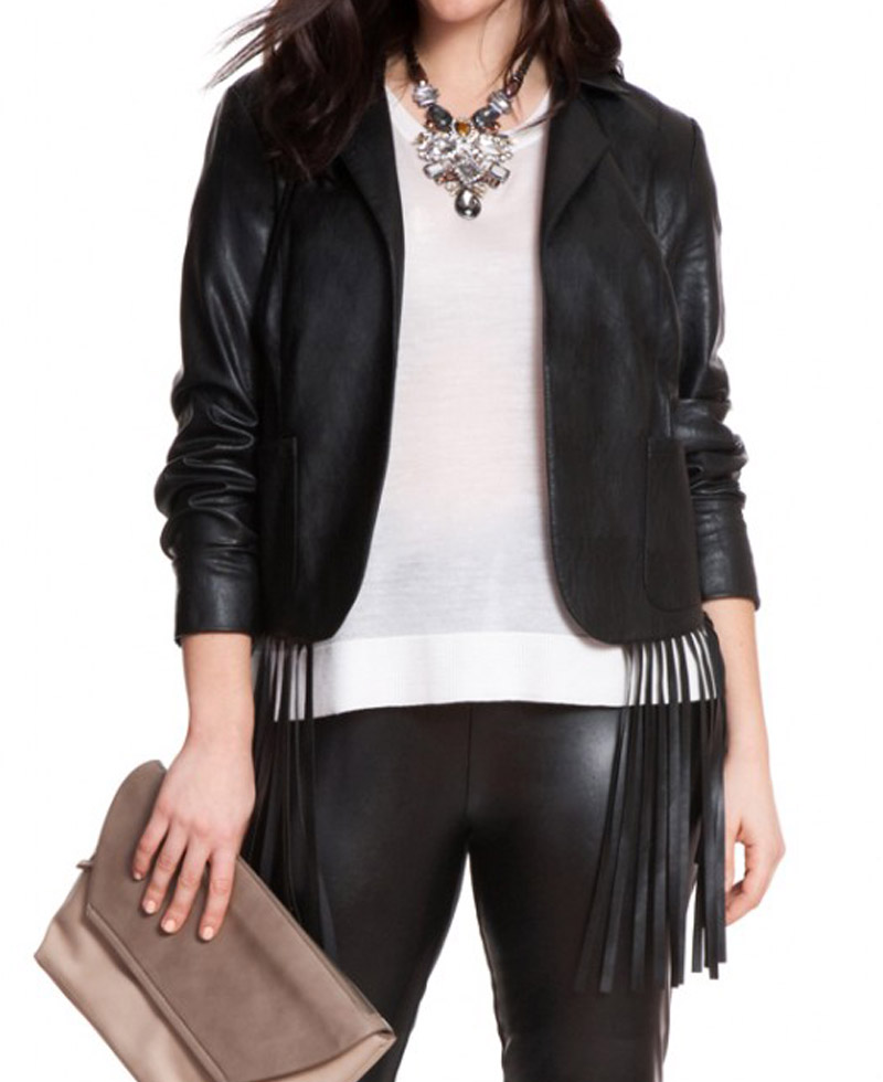 Black leather fringe jacket is the vital for a women searching for a splendid style and fashionable stitched master piece. Black leather blazer jacket is available in genuine leather material marking the quality with which it is made and is internally lined by a viscose lining that equips it with a soft and lavish texture for all skin types. The Black leather fringe jacket has a lapel collar with open hem cuffs on full length sleeve which elevates the style statement it holds. The characteristic property of the black leather blazer jacket is the fringe hanging from the hemline on the back and from the sides of front of each section. The two external insert pockets present at lower waist line of fringe leather jacket elevate the utility option of the apparel. Black leather fringe jacket is also functional for providing comfort and warmth in winters due to the leather material is has been prepared from.