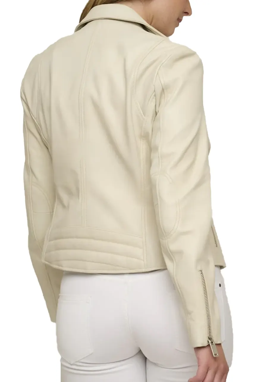 Women’s Stylish Ghost Birch Cream Leather Biker Jacket
