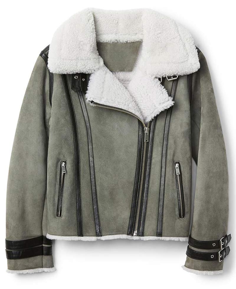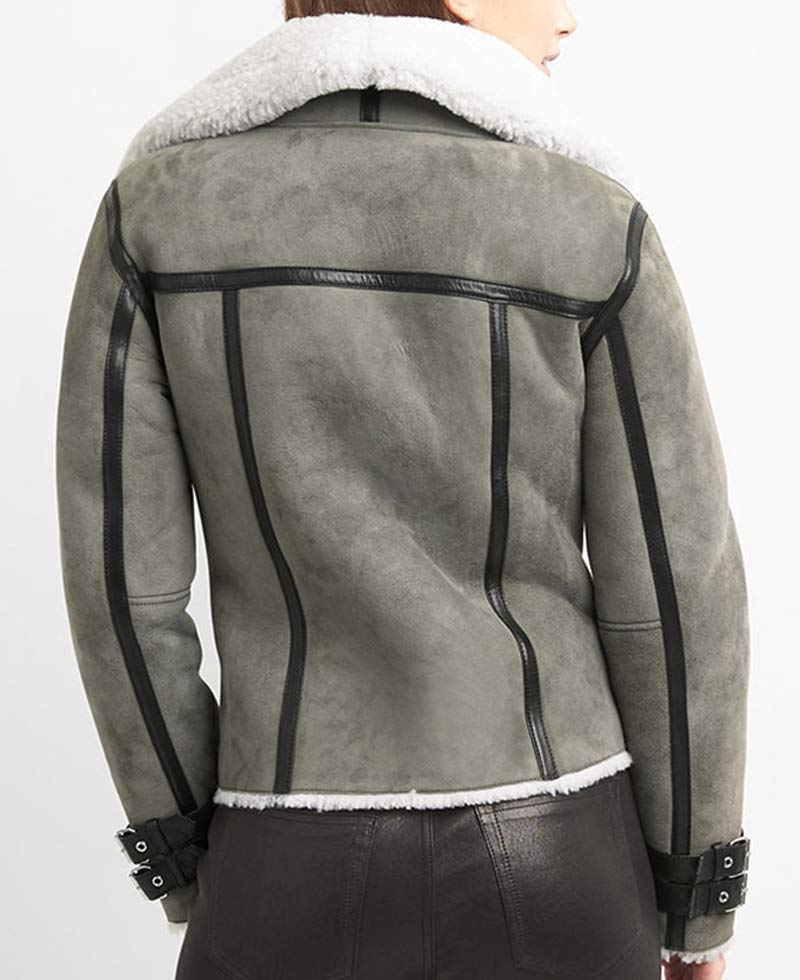 grey suede jacket womens is formed from the high and enduring quality of suede leather material. This jacket has a material quality that remains long. This jacket will shield you against cold weather and will make you feel warm and cosy. This jacket is very comfortable that you can wear it all day long because it contains inner soft shearling lining. womens grey shearling jacket has a stand up belted style collar that fits in perfectly with the style of this jacket. This jacket has front ykk branded zipper style closure that looks very attractive. This jacket has full length sleeves with belted cuffs. There are front zipper pockets to secure stuff in them. You can get this jacket in grey color. You will embrace the detailing of this leather jacket. Follow the details and order this jacket. We guarantee you that you will not disapprove once after buying this jacket.
