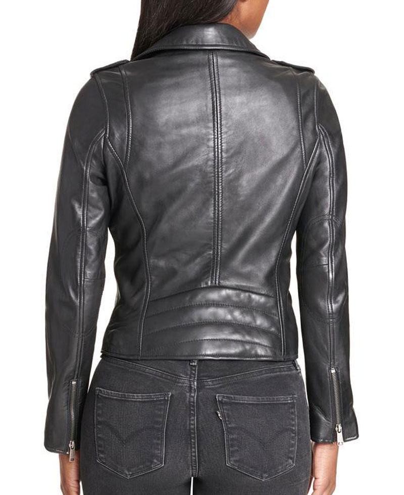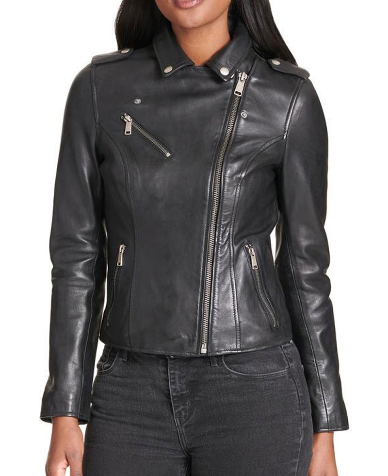 women’s asymmetrical leather jacket is manufactured from a reliable quality of genuine leather material. The stuff we use in the production of this jacket is good, lasting and of high quality. This jacket will shield you against cold climate and will make you feel warm and cosy. This jacket will give you a very appealing sight. The inner soft viscose lining makes this outfit very comfortable that you can carry it all day long. women’s asymmetrical leather jacket has zipper style cuffs with full length sleeves. This jacket has a snap tab down notch collar. The front zipper closure of this jacket fits in perfectly with the style of this jacket. This jacket has two zipper hand pockets along with zipper pocket at chest. This jacket contains shoulder epaulets as well. You can get this stylish and casual wear in black color. Do order your piece right now without wasting further time. You would not regret once after buying this jacket.