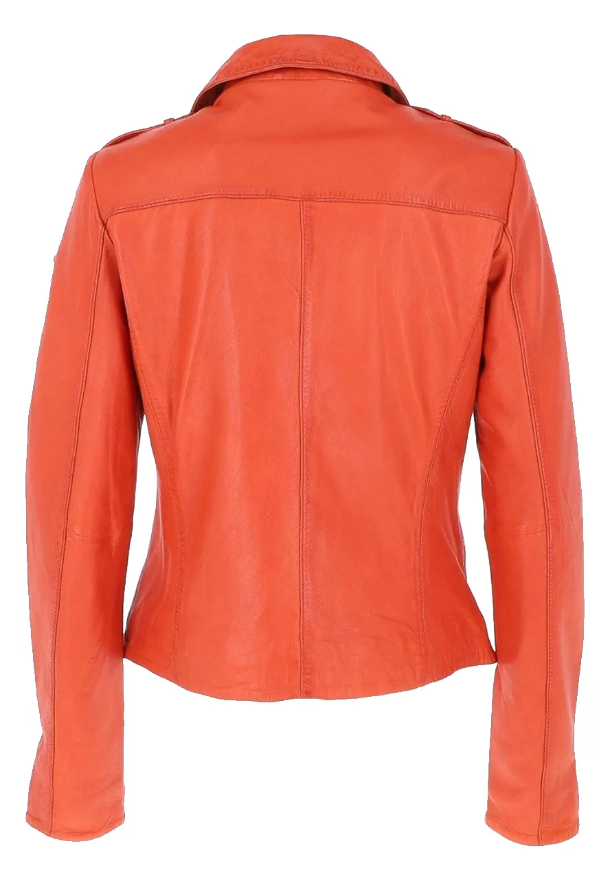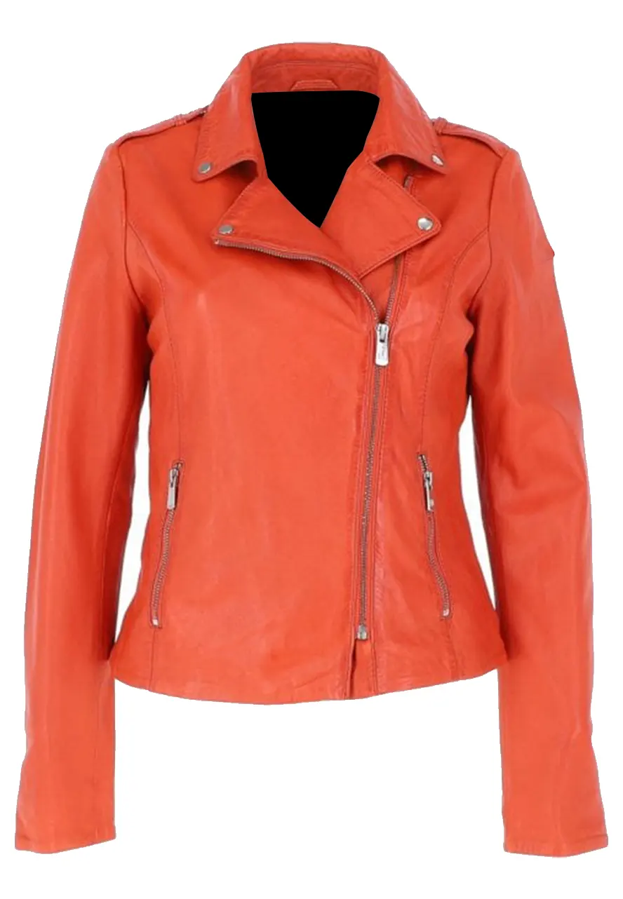 Women’s Biker Orange Cross Zip Leather Jacket