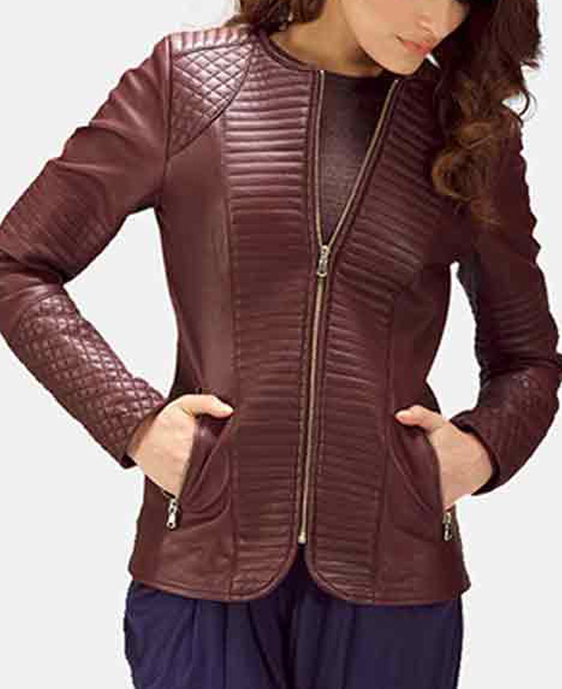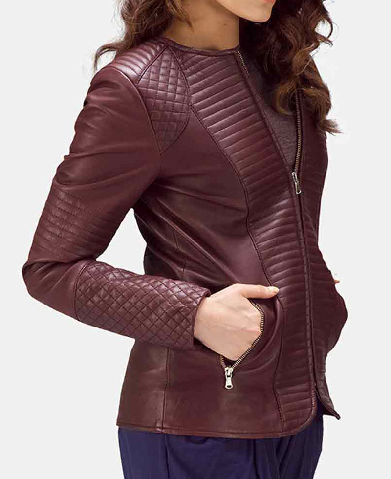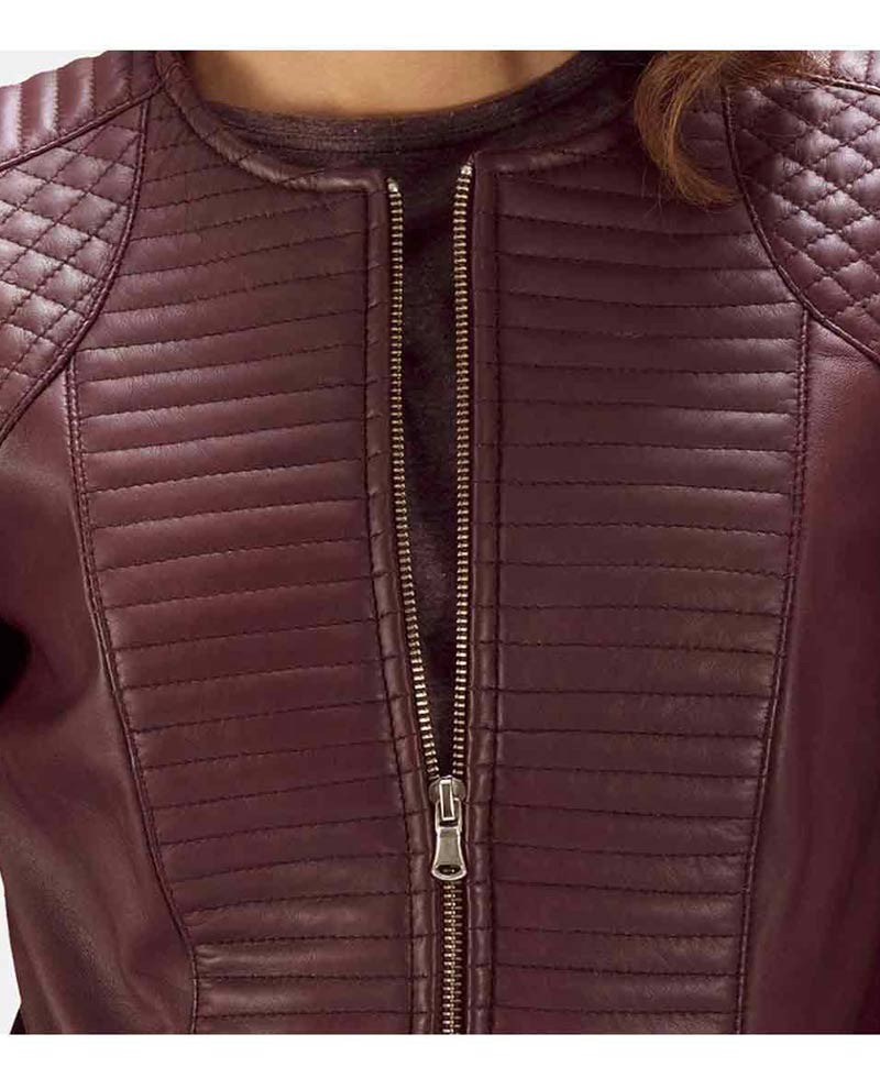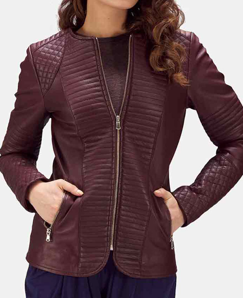 Women’s Casual Wear Quilted Design Burgundy Leather Jacket