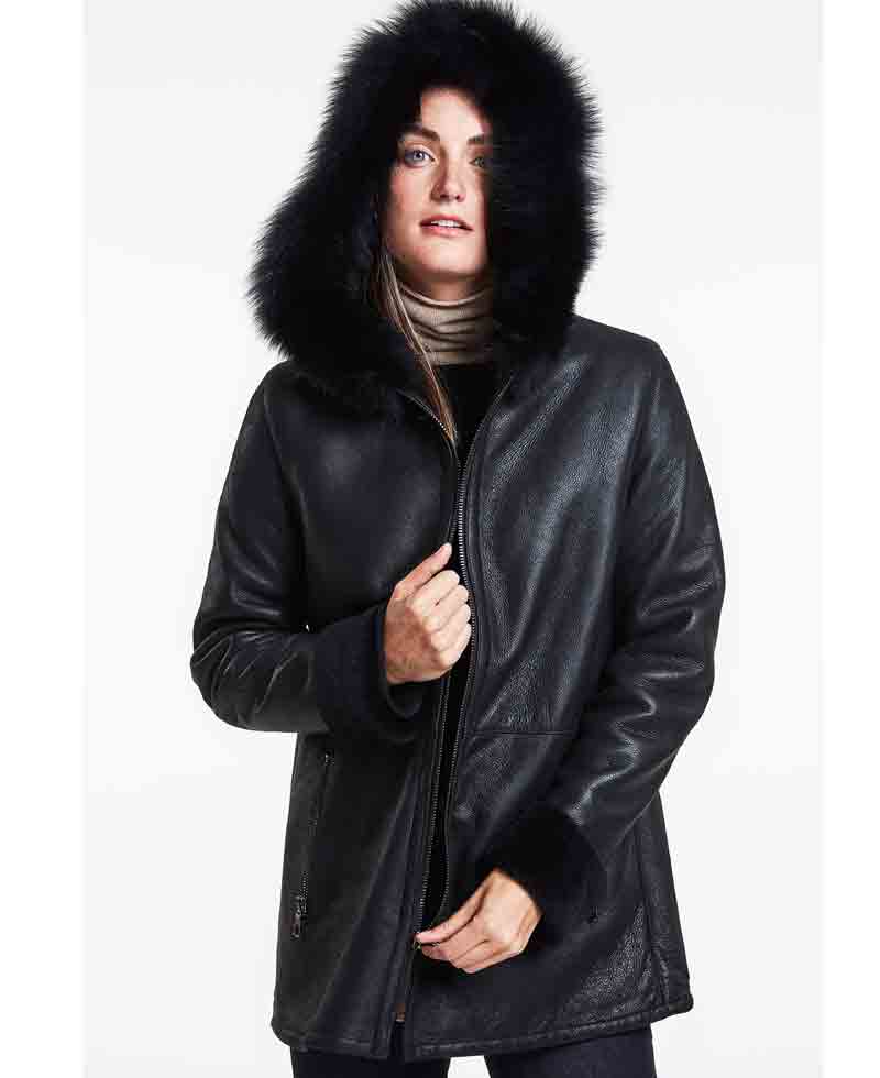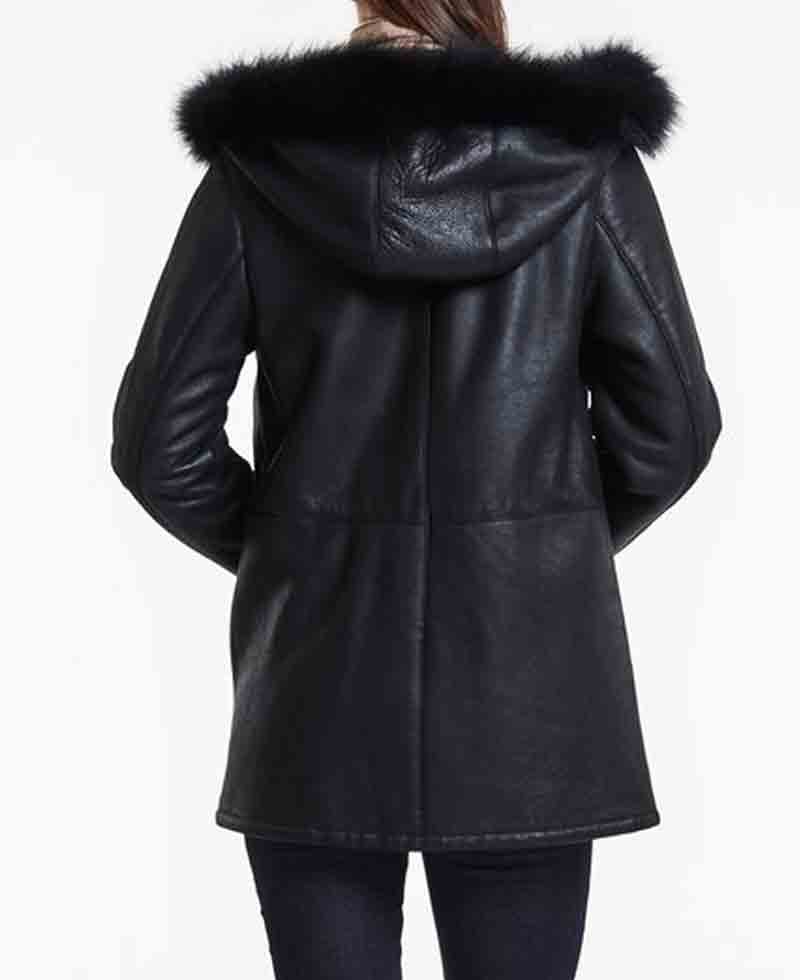 womens shearling hoodie is fabricated from the great quality of genuine leather material. The material quality is long-lasting and guaranteed. This jacket is very comfortable as it contains inner shearling lining. This jacket is manufactured to guard you against cold climate and to make you feel warm and cozy. This jacket will give you a trendy and appealing look. womens shearling jacket with hoodie has full-length sleeves on turn back adjustable cuffs. This leather jacket has front ykk branded zipper style closure that fits in perfectly with the style of this leather jacket. Metal zippers are used on the pockets to give this attire a trendy look. There are zipper side pockets. This leather jacket has a fur attached hoodie giving this leather jacket an eye catching appearance. You will stun the look in this jacket. You can get this leather jacket here in black color. Order this jacket right now without wasting much time.