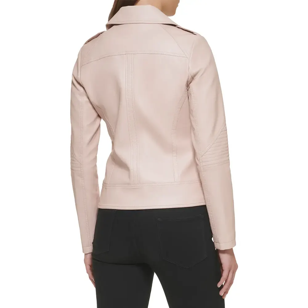 Women’s Blush Pink Slim Fit Leather Moto Jacket