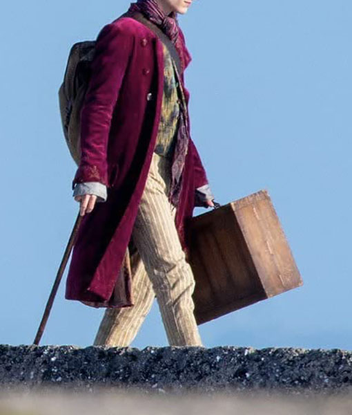 If You Want to Dress Like That No One Can Stop Looking at You, Then You Must Go for the Wonka 2023 Willy Wonka Coat. Its Top-quality Velvet Fabrication Makes It Warm and Luxuriant and Soft Viscose Inner Will Comfy You as Long as You Wear It. The Elegant Purple Color Will Enhance Your Handsomeness. The Willy Wonka Velvet Long Coat Has Been Designed by Using Features Like Lapel Style Collar, Buttoned Closure, and Side Waist Flapped Pockets. Now Be Creative with Your Dress Just by Wearing the Red Willy Wonka Coat.