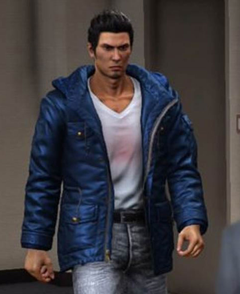 Yakuza 6 Game Kazuma Kiryu Blue Jacket with Hood