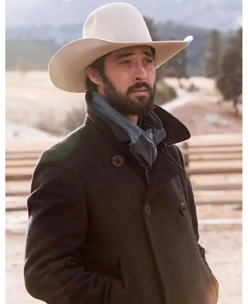 Walker coat was worn in the American television drama series titled as Yellowstone in which Ryan Bingham who played the role of walker. This peacoat he wore is made from good quality wool fabric. It contains soft Viscose on the inner side which gives you comfy sensation and keeps you warm. It has an appealing black color. Yellowstone Ryan Bingham peacoat has front double-breasted buttoned closure and a high neck style collar. It comes with full long length style sleeves and open hem style cuffs. You will get to see two side waist pockets at the front for securing stuff.