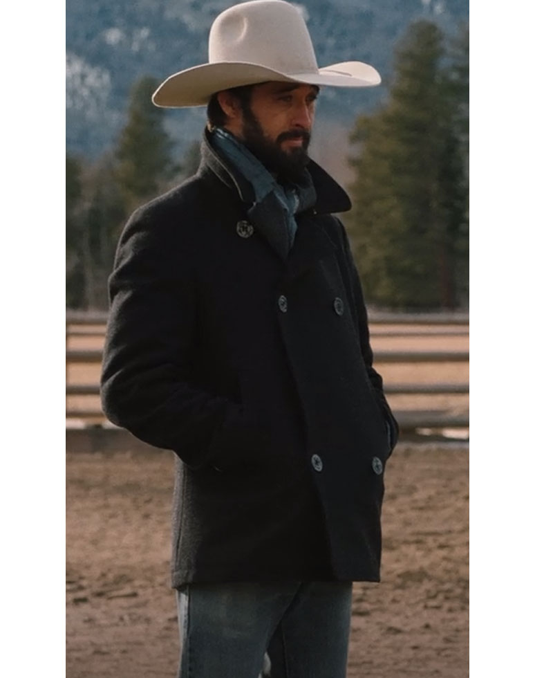 Ryan Bingham Yellowstone Walker Black Wool Peacoat