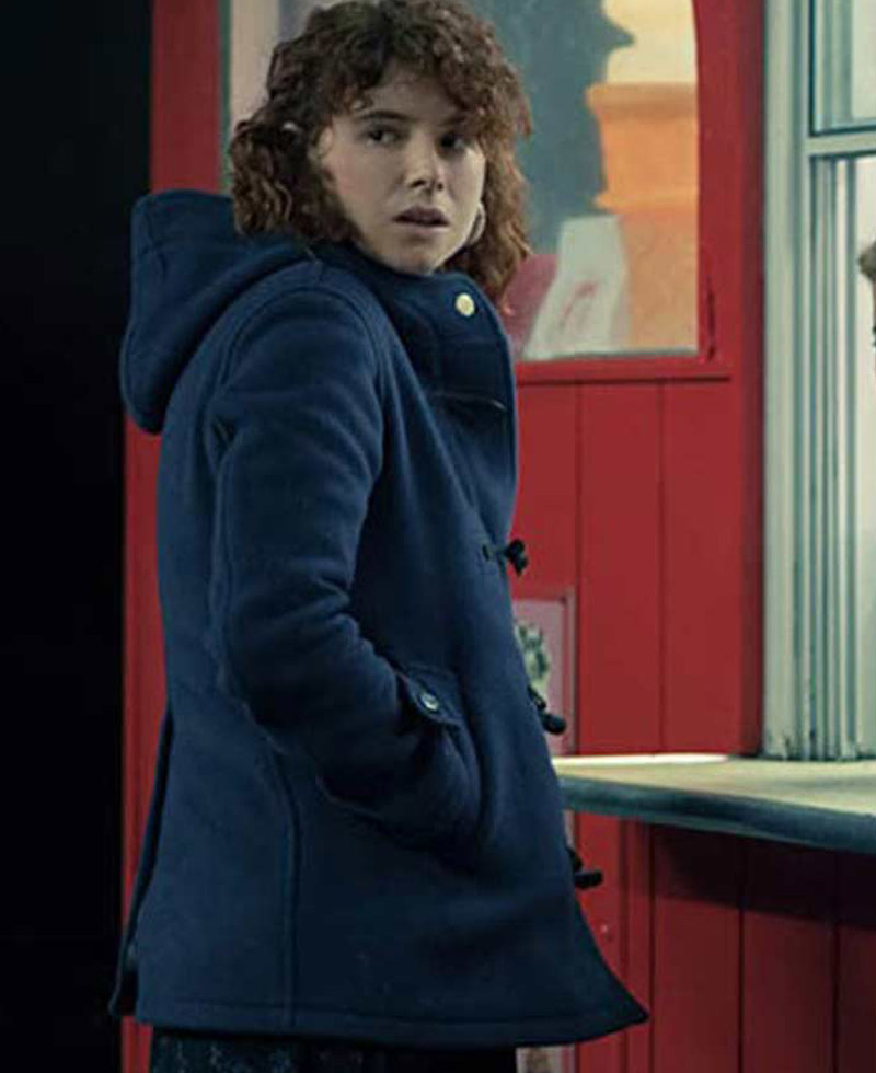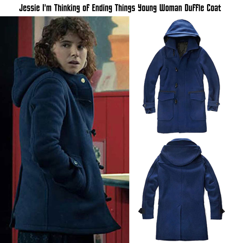 The idea of this coat is taken from the famous American 2020 movie called I am thinking of ending things where the famous Irish actress Jessie Buckley wore this coat when she was portraying the role of Lucy. The outer side of this Young Woman duffle coat is fabricated with wool material of premium quality. The internal side of this duffle coat is stitched with a smooth and soft viscose lining. The coat is perfect to keep you warm in winter. The coat comes in blue and red color. It has buttons on its front side for closure. Jessey Buckley I’m thinking of ending things coat has buttoned cuffs on full-length style sleeves. There are two front side waist pockets on this coat where you can secure stuff. It has an attached hood to the collar. This coat is perfect for winter. You can carry it for outings and at parties.