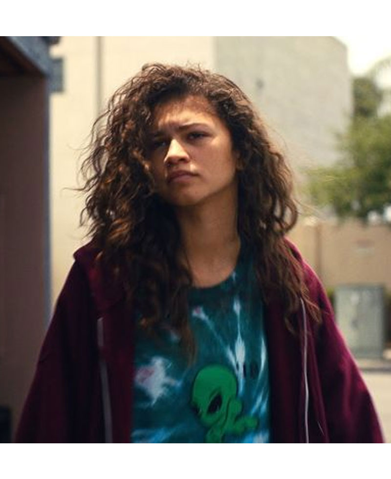 While portraying the character of Rue Bennet in the American web drama series called Euphoria, the actress Zendaya wore this hoodie and looked amazing and gorgeous. The Rue Bennet Hoodie is fabricated with a premium quality of fleece fabric. It comes in a burgundy color. The internal side of this Rue Bennet Hoodie is stitched with smooth and soft viscose lining to keep you warm and comfortable. Zendaya Euphoria hoodie has a ykk branded zipper on its frontal for the closure. There are two front side waist pockets on this hoodie where you can keep stuff. The Rue Bennet hoodie has rib-knitted style cuffs on full length style sleeves. The rib-knitted hemline and an attached hoodie make the looks of this apparel more captivating. The hoodie is the exact replica of the original one.